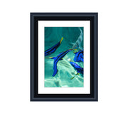 The image features a beautifully crafted wooden frame that encapsulates a vibrant underwater scene. The frame is designed with a...